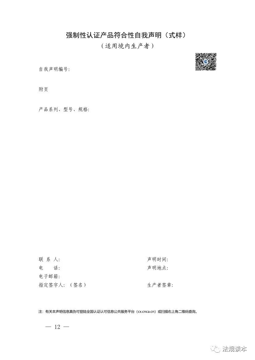 认监委关于进一步完善强制性产品认证自我声明评价方式和明确有关实施要求的公告
